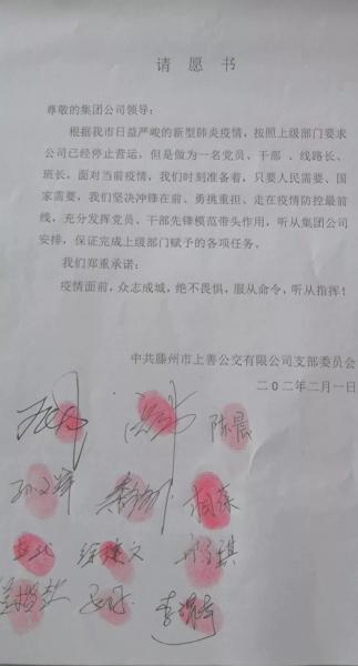 在新型冠狀病毒感染的肺炎疫情阻擊戰(zhàn)中,上善公交黨員干部紛紛主動請纓,發(fā)出了“作為一名黨員、干部、線路長、班長面對當(dāng)前疫情,我們時刻準(zhǔn)備著,只要人民需要、國家需要,我們堅決沖鋒在前、勇挑重?fù)?dān)、走在疫情防控最前沿,充分發(fā)揮黨員、干部先鋒模范帶頭作用”的共同心聲。疫情面前,黨員們以實際行動踐行初心,以心中信仰擔(dān)當(dāng)使命,為人民群眾的生命安全保駕護航!