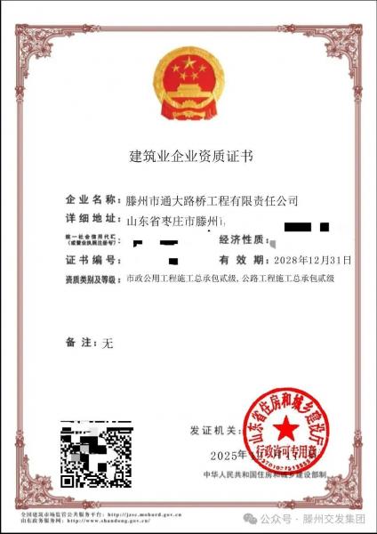 近日,經(jīng)省住房和城鄉(xiāng)建設(shè)廳核查批準(zhǔn),交發(fā)集團通大公司成功取得市政公用工程施工總承包二級資質(zhì)。