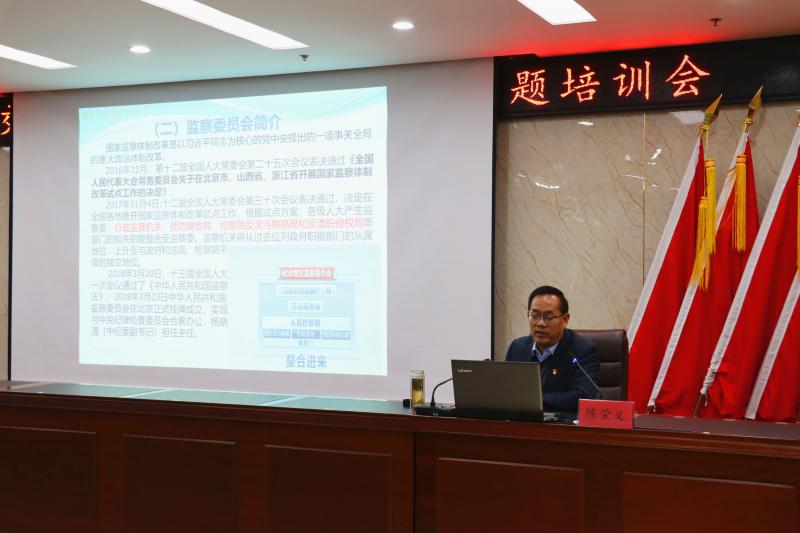 會(huì)上,市紀(jì)委監(jiān)委派駐第四紀(jì)檢監(jiān)察組組長(zhǎng)陳榮義以豐富的工作實(shí)踐經(jīng)驗(yàn)和扎實(shí)的理論功底,以《全面從嚴(yán)治黨 護(hù)航企業(yè)發(fā)展》為題,結(jié)合當(dāng)前反腐環(huán)境形勢(shì),監(jiān)察委員會(huì)職能等課題,以案為鑒、以案說(shuō)法,并通過(guò)播放《永葆政治本色》專(zhuān)題片,深入淺出地就如何抓好黨風(fēng)廉政建設(shè)和反腐敗工作進(jìn)行了深刻剖析闡述,給全體受訓(xùn)人員進(jìn)行了一次十分生動(dòng)的廉政教育課。