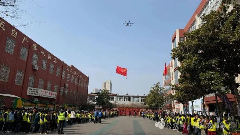 活動在莊嚴(yán)的升旗儀式中拉開帷幕,一架懸掛五星紅旗的無人機緩緩升空,以獨特方式表達(dá)愛國情懷,成為全場矚目的亮點。隨后,穿越機拖曳彩煙在空中高速穿梭,繪出動感流暢的飛行軌跡。整場飛行展演兼具專業(yè)性與觀賞性,現(xiàn)場掌聲不斷,孩子們在驚嘆中近距離感受了科技的魅力。