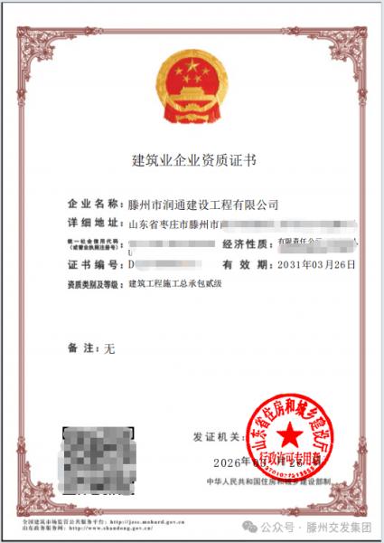 經(jīng)省住房和城鄉(xiāng)建設廳核查批準,近日,交發(fā)集團潤通公司成功取得建筑工程施工總承包貳級資質。