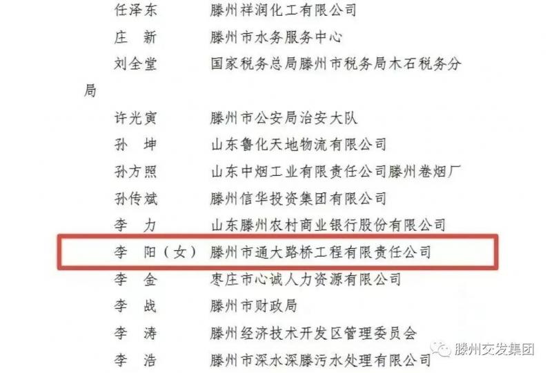 市交發(fā)集團通大路橋公司李陽同志榮獲“滕州市五一勞動獎?wù)隆薄?/strong>