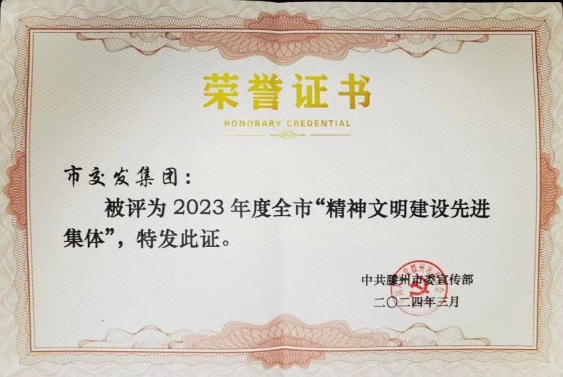近日,中共滕州市委宣傳部下發(fā)了關(guān)于表?yè)P(yáng)2023年度宣傳網(wǎng)信工作先進(jìn)集體和先進(jìn)個(gè)人的通報(bào),滕州市交通發(fā)展集團(tuán)榮獲2023年度全市“精神文明建設(shè)先進(jìn)集體”榮譽(yù)稱(chēng)號(hào)。