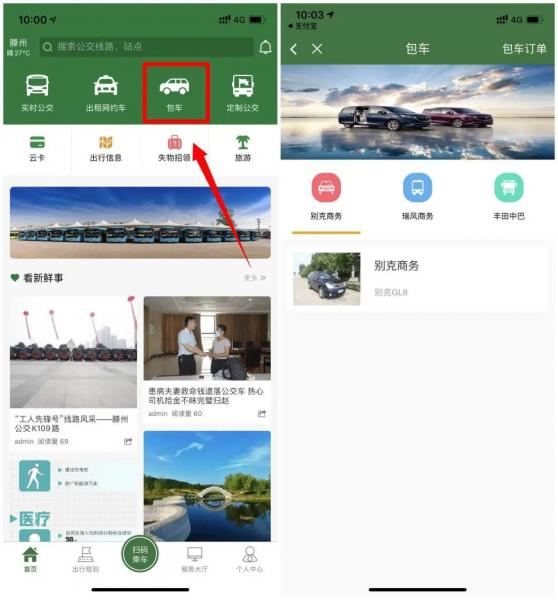 點擊APP首頁“包車”,進(jìn)入頁面后可以查看具體租賃車輛型號,確認(rèn)車型后可點擊“預(yù)約訂車”,通過提示輸入用車需求即可智能生成租賃訂單,同時也可通過線上客服直接對接租賃需求。