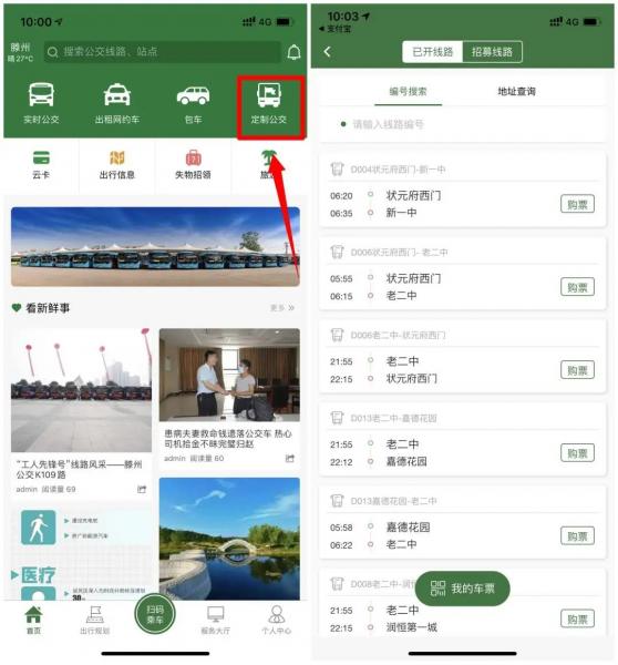 點擊APP首頁“定制公交”,進(jìn)入頁面后,可以查看已開通的“定制公交”線路編號、里程、票價、站點等詳細(xì)信息,選擇你的乘車站點,即可預(yù)約乘車。點擊后方的購票選項即可進(jìn)入購票界面,支持日票、周票、月票購買。購買后用戶出示驗票碼即可乘車!岸ㄖ乒弧睒I(yè)務(wù)支持招募線路開通申請,有乘車需求的用戶,可點擊“發(fā)起線路”,填寫具體線路需求,報名人數(shù)到達(dá)指定人數(shù)后即可開通定制線路。